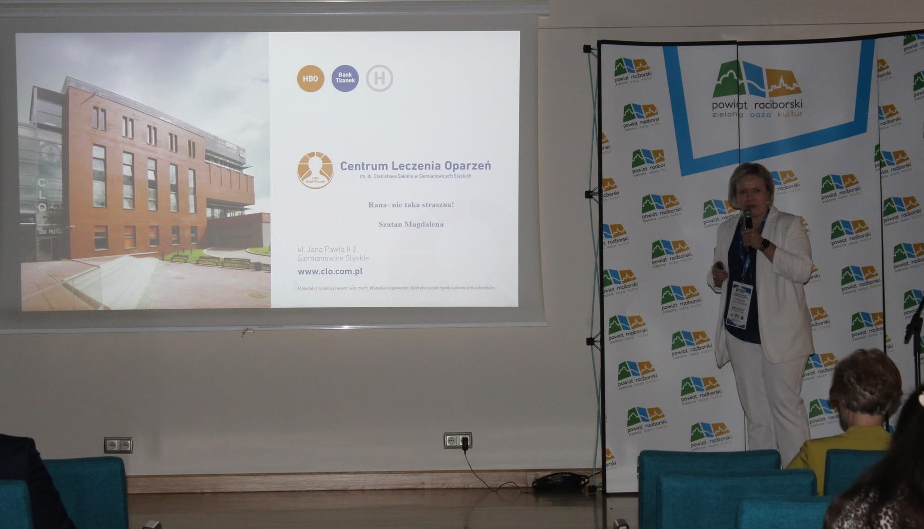 Jedną z prelegentek była mgr piel. Magdalena Szatan, która w Centrum Leczenia Oparzeń jest pionierką wdrażania kompleksowych działań prehabilitacyjnych dla pacjentów z raną trudno gojącą się.