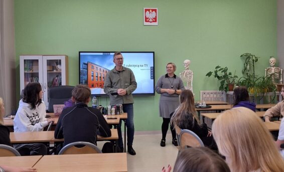Przez dwie godziny lekcyjne łączyliśmy wykłady z praktycznymi warsztatami, aby przybliżyć uczniom temat cukrzycy, omówić zasady zdrowego odżywiania oraz pokazać, jak wiedza żywieniowa może wspierać osoby z tą chorobą.