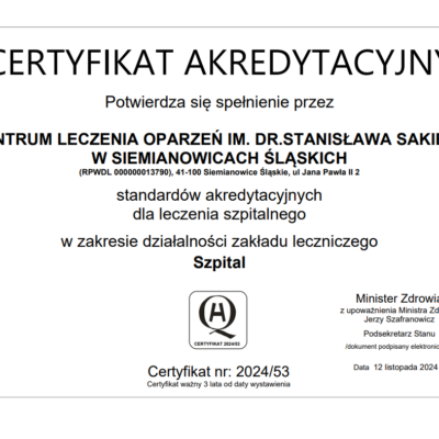 W 2024 roku Centrum Leczenia Oparzeń ponownie pomyślnie przeszło proces akredytacji, potwierdzając utrzymanie najwyższych standardów jakości i bezpieczeństwa opieki.