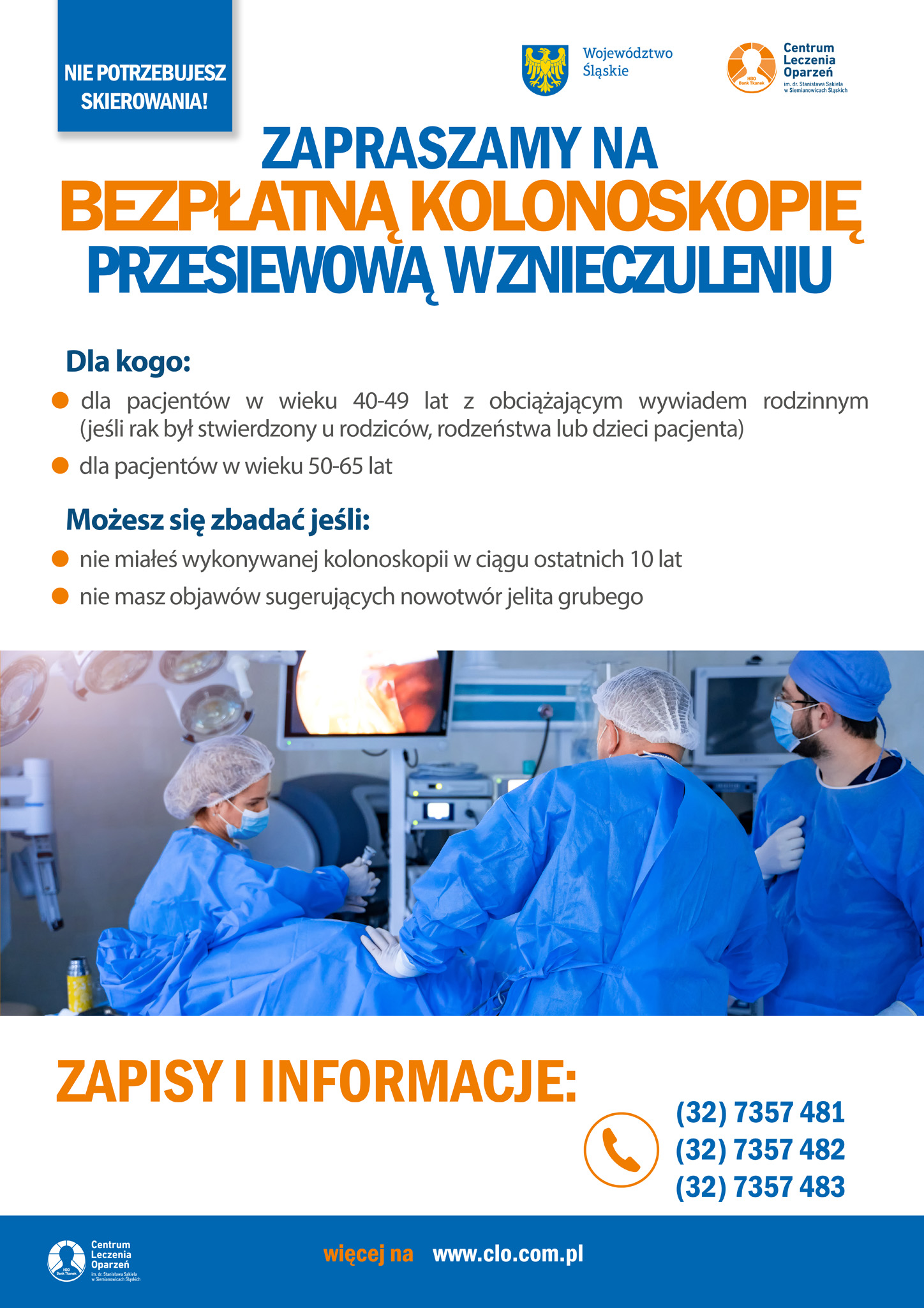 Kontakt: Rejestracja -  32 735 74 81 Bronchoskopia: 32 735 74 82 Kolonoskopia/Gastroskopia: 32 735 74 83