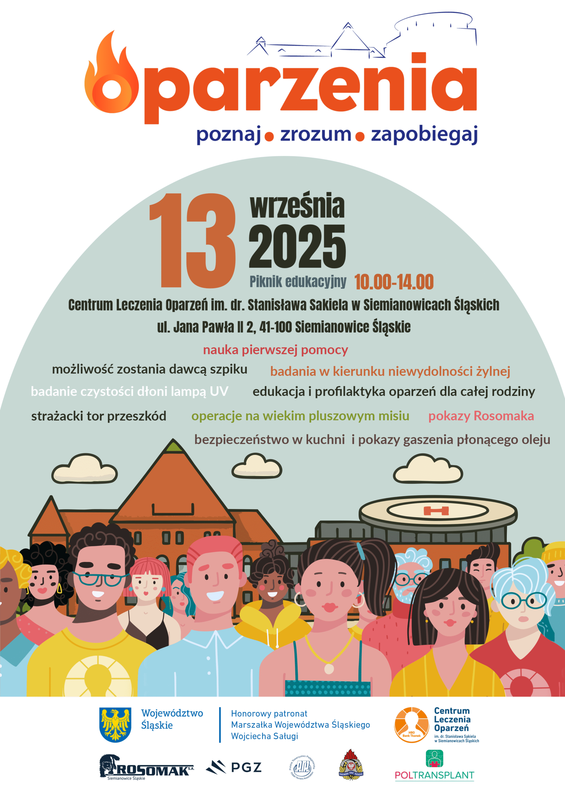 Serdecznie zapraszamy wszystkich mieszkańców Siemianowic Śląskich i okolic na wyjątkowy Piknik Edukacyjny, którego celem jest zwiększenie świadomości na temat profilaktyki i leczenia oparzeń oraz promowanie zdrowego stylu życia!