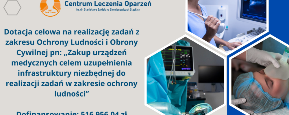 Centrum Leczenia Oparzeń im. dr. Stanisława Sakiela w Siemianowicach Śląskich jest beneficjentem wielu projektów dofinasowanych ze środków zewnętrznych, w tym głównie z Unii Europejskiej w ramach Regionalnego Programu Operacyjnego Województwa Śląskiego na lata 2014 -2020.